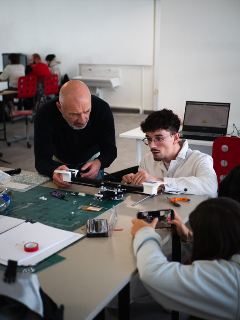 Au cours de la première semaine du workshop de recherche 2024, les étudiant·es participant·es ont pris en main un prototype de machine à deux axes développé par Étienne Mosnier, étudiant en DRSD au sein du PAD. Cette phase initiale a consisté en une analyse technique et critique du dispositif, envisagé comme une base évolutive susceptible d’être transformée en fonction d’usages spécifiques.
