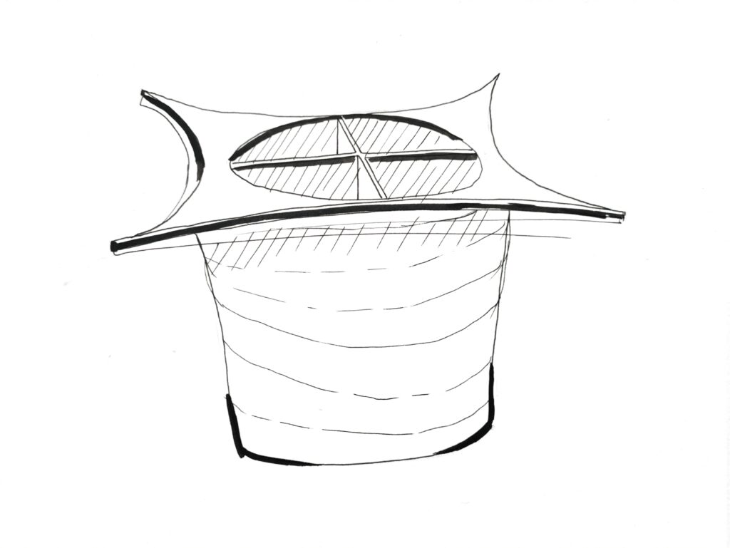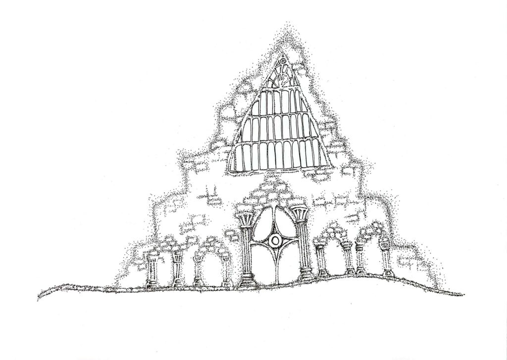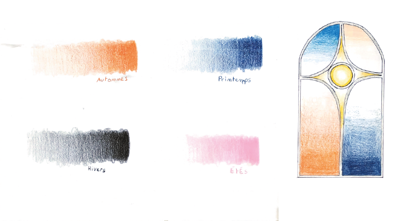 L’architecture rythmée autour des équinoxes et des solstices, s’ouvrait aux voyageurs à l’est par une imposante porte. Elle était ornée d’un vitrail aux nuances de couleurs chaudes représentant l’astre de feu. En suivant un circuit de déambulation des points cardinaux, les pèlerins collectaient, comptaient et quantifiaient ce que leur offrait le palais à l’aide de quatre artefacts qui les guidaient dans leur rituel de récolte. Pour vénérer la course que le soleil effectuait au fil des saisons, le voyageur utilisait le premier artefact pour y recueillir fleurs et plantes médicinales. Les hommes récoltaient ainsi de quoi se soigner et rester en forme pour toutes les autres saisons à venir en écrasant et transformant les plantes afin d’en faire divers soin consommables.