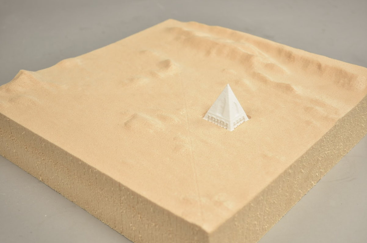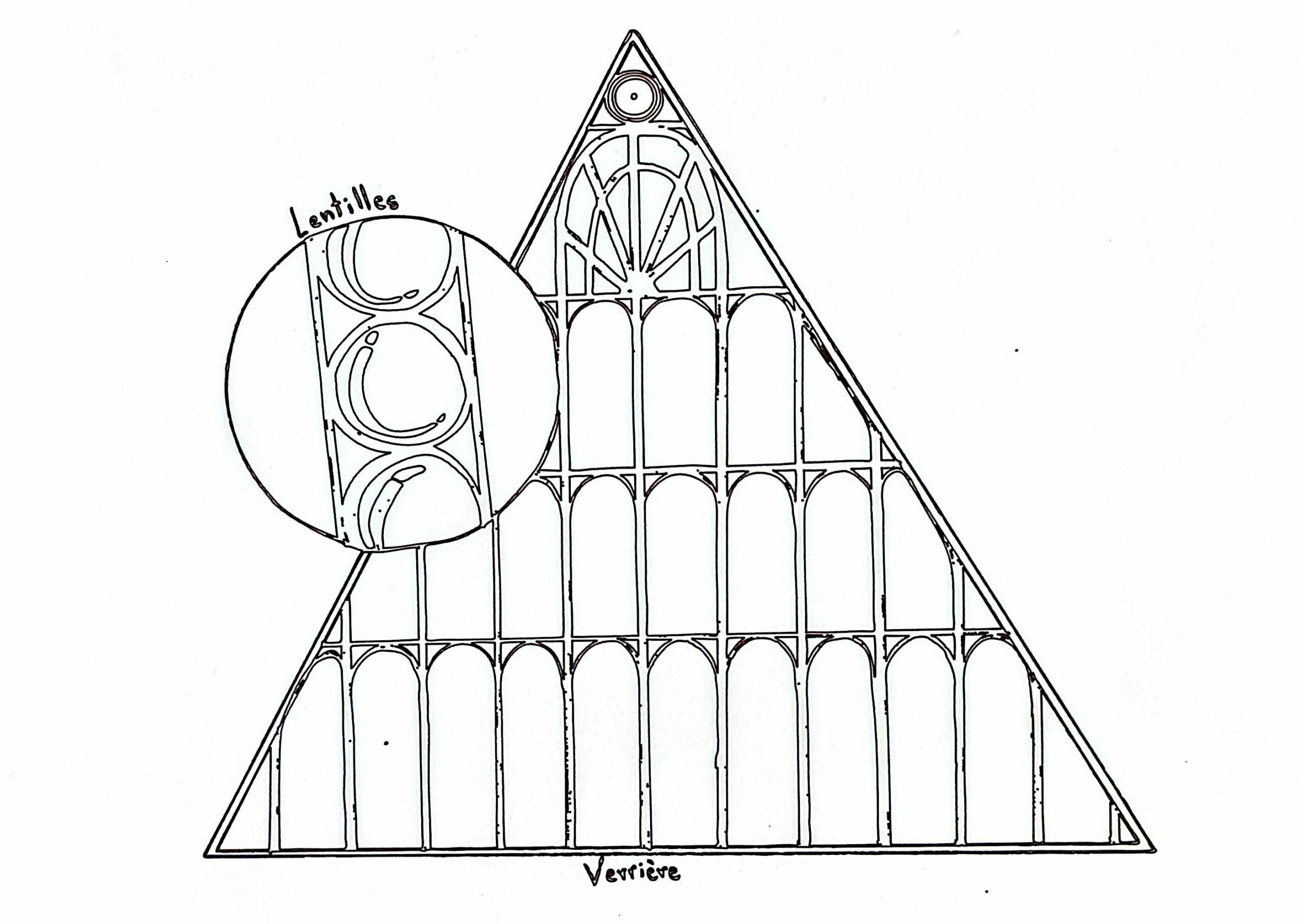 Les rayons, à leur intensité maximale, traversaient les salles hautes et s’accumulaient dans les parois du temple. À chaque face de l’édifice, une grande fenêtre de vitraux s’imposait, collectant l’énergie solaire grâce à des milliers de lentilles qui rechargeaient le système photosensible, cœur du fonctionnement de la pyramide. Ces grandes fenêtres de verre permettaient également la distribution de la lumière du désert en faisceaux lumineux projetés à l’intérieur du temple, inscrivant une atmosphère changeante selon chaque saison.
